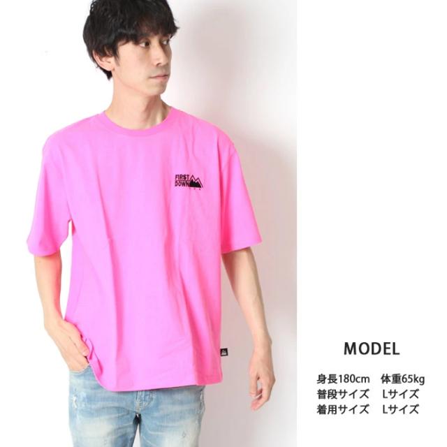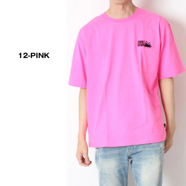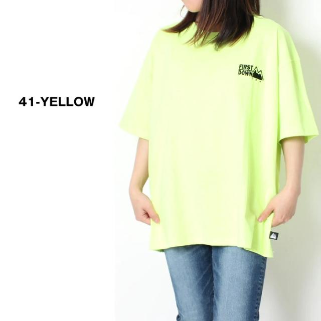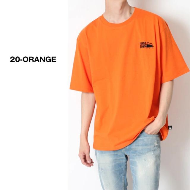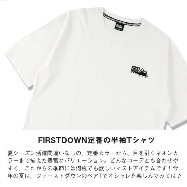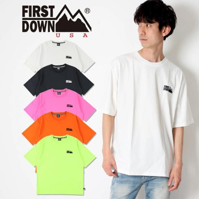 FIRST DOWN ファーストダウン メンズ レディース Tシャツ 半袖 ワンポイント ロゴ ホワイト ブラック イエロー オレンジ ピンク ストリート カジュアル スケボー アメカジ ブランド シンプル きれいめ 大人 紳士 男性 大人 丈夫 頑丈 パジャマ 部屋着 タフ ペアルック リンクコーデ
