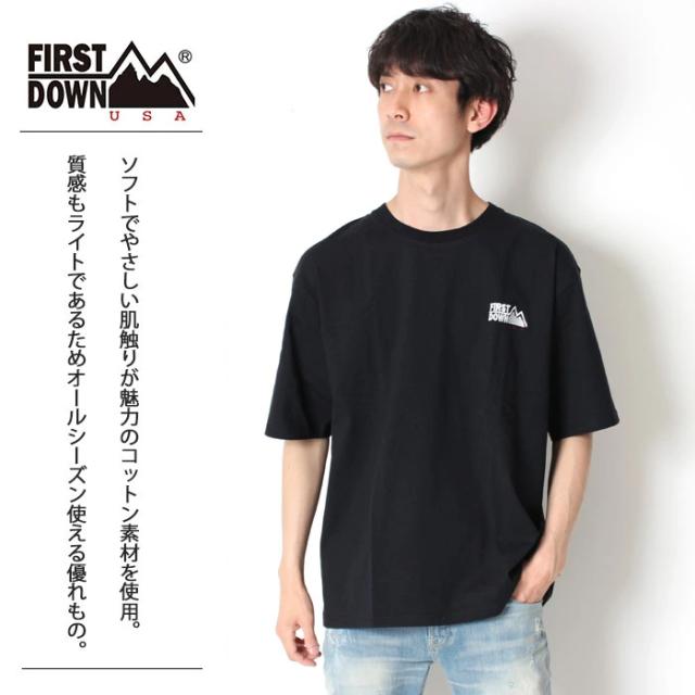 半袖 Tシャツ FIRST DOWN ファーストダウン ロゴ 刺繍 F701001 メンズ レディース Tシャツ 半袖 ワンポイント ロゴ ブランド 安い ホワイト ブラック カジュアル シンプル