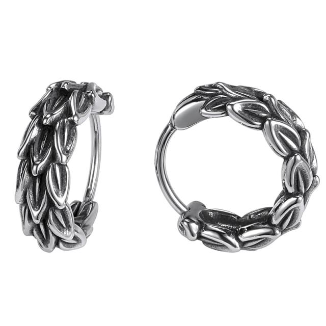 竜のウロコをイメージさせるお洒落なステンレス素材のフープピアスです。