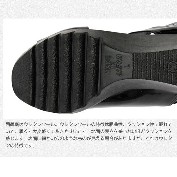 1足1足、熟練の職人さんに丁寧に作って頂いた、メイド・イン・ジャパン。 ハンドメイドの温か味と品質の良さが感じられるスペシャルな1足です。 高めなヒールだけど高さを感じないほどの履き心地、歩き心地。ベーシックで足馴染みの良い4色をチョイス。アウトソールはウレタンソール。ウレタンソールの特徴は屈曲性、クッション性に優れていて、履くと大変軽くて歩きやすい。地面の固さを感じないほどクッションを感じます。 方面に細かい穴のようなものが見える場合がりますが、これはウレタンソールの特徴です。 ベルト部分は実はゴムになっているので、さっと履けてさっと脱げる仕様。 履いて歩く時の足首にフィットしてさらに締め付けも軽減します。 注目の日本製ウレタンソールサンダル。 個性敵なカッティングですが、甲部分を覆う太ストラップでしっかりホールドされて安心感◎