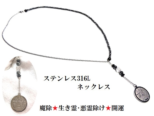生霊除け、悪霊、死霊、邪気除け・願望成就・魔除け、生き霊★テトラグラマトン★五芒星★ヘマタイト・水晶・オニキス・モリオン★ステンレス316L★ネックレス★パワーストーン★護符(霊符)