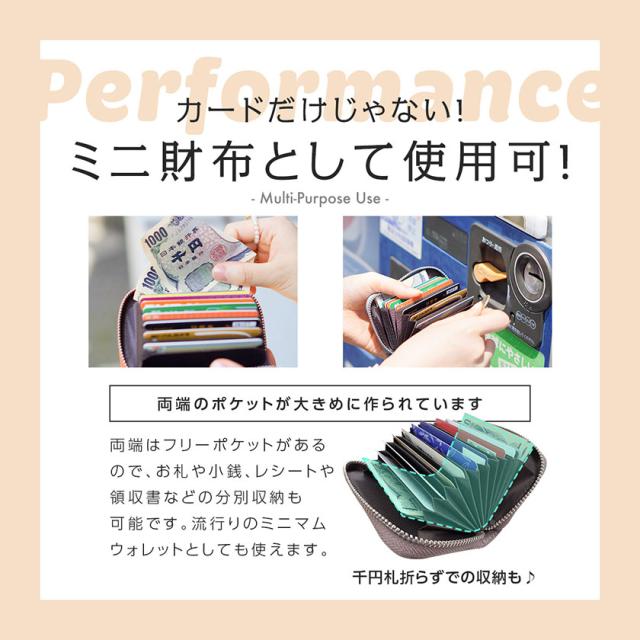 | 商品特徴 | ◎ポイントカードから診察券まで一括管理 ◎じゃばら式収納でカードが一目瞭然 ◎スキミング防止機能で安心 ◎小銭やお札を入れて、これ1つでお出かけも |