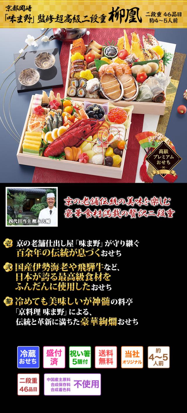 長形2段おせち 【46品目・4〜5人前】 京都岡埼「味ま野」監修超高級重 柳凰 【送料無料】 冷蔵おせち 冷蔵 おせち お節 御節