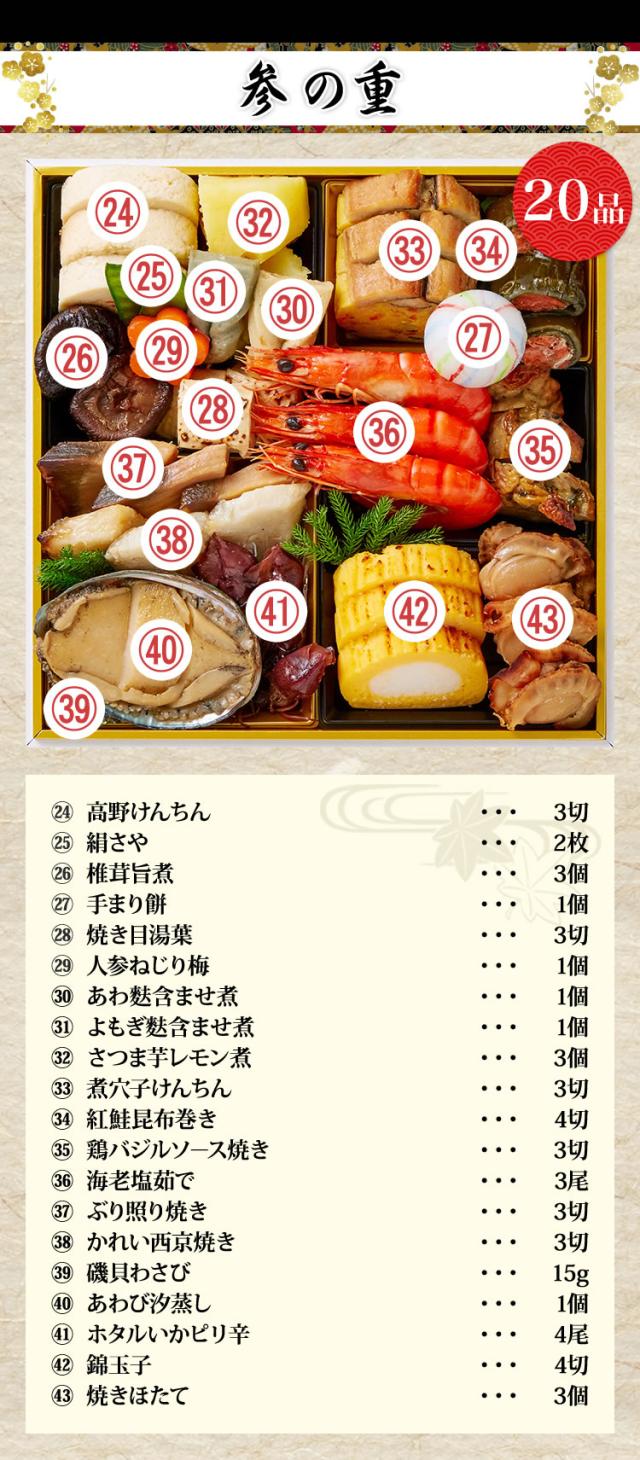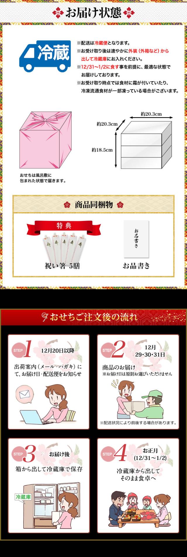 6.5寸3段おせち 【43品目・3〜4人前】 兵庫豊岡「奥城崎シーサイドホテル」監修 6.5寸三段重 渚沙 【送料無料】 冷蔵おせち 冷蔵 おせち お節 御節