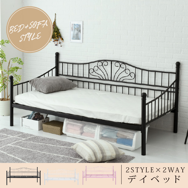 JK-PLAN(ジェイケイ・プラン) ロートアイアンデイベッドシングル(ブラック・幅104.5×奥行203×高さ112/96cm) LNG-0002-BK返品種別B