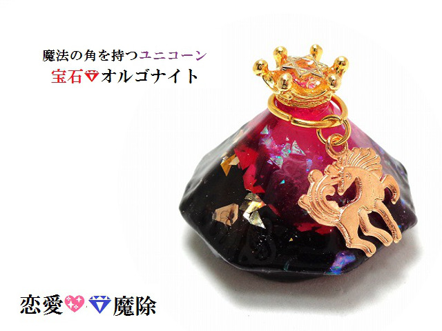 魔除・恋愛・良縁・生き霊★ピンク・ブラック★水晶★オルゴナイト★宝石オルゴナイト★ユニコーン★ダイヤ★王冠★風水★パワーストーン★護符(霊符)