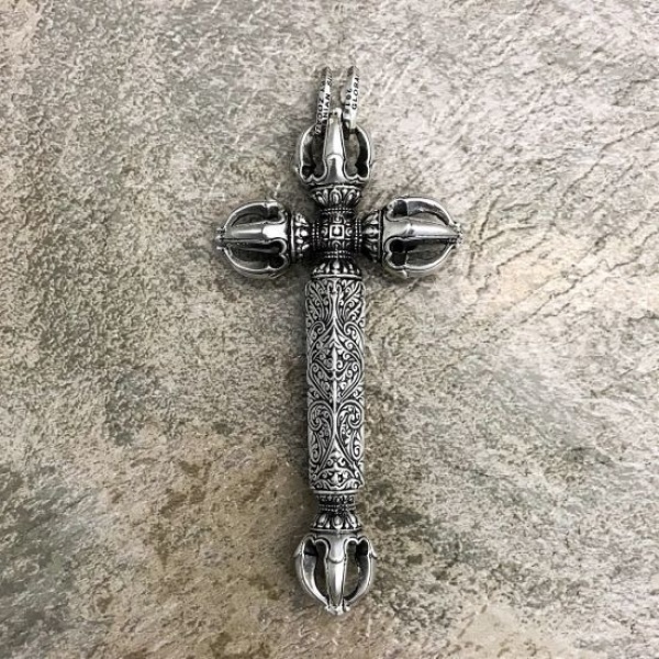 煩悩を打ち砕き、仏の智慧を表す宝 具、ドージェが四方を司る荘厳な雰囲気に包まれたクロスペンダ ント。