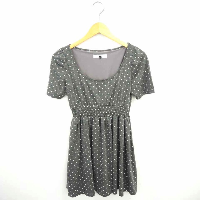 【中古】マーキュリーデュオ ワンピース ひざ丈 ドット フレア 丸首 プルオーバー 半袖 F グレー ホワイト 白 /TT6