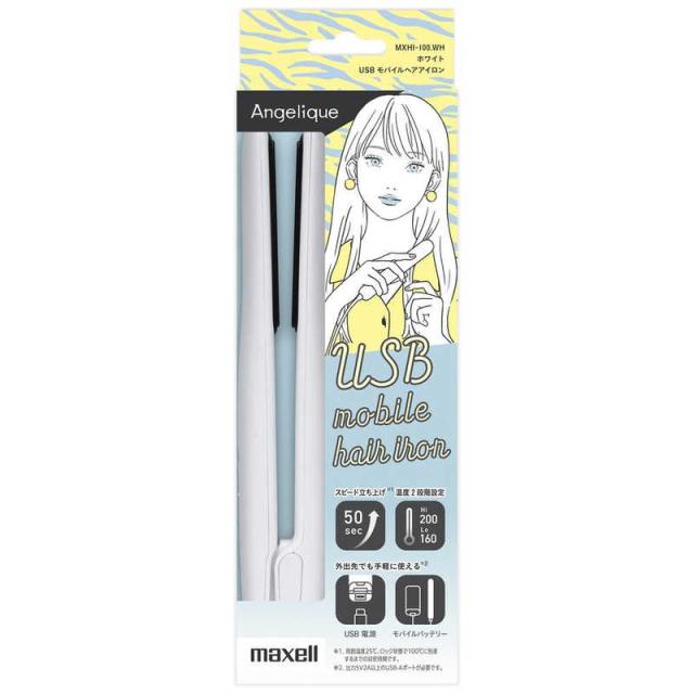 マクセル USBモバイルヘアアイロン Angelique 14mm 160℃〜200℃ 海外対応 ホワイト MXHI-100