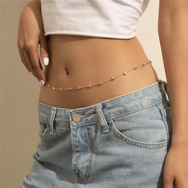 金色ゴールドの立体的な星とクサリチェーンをリンクさせた大人可愛いボディチェーン
