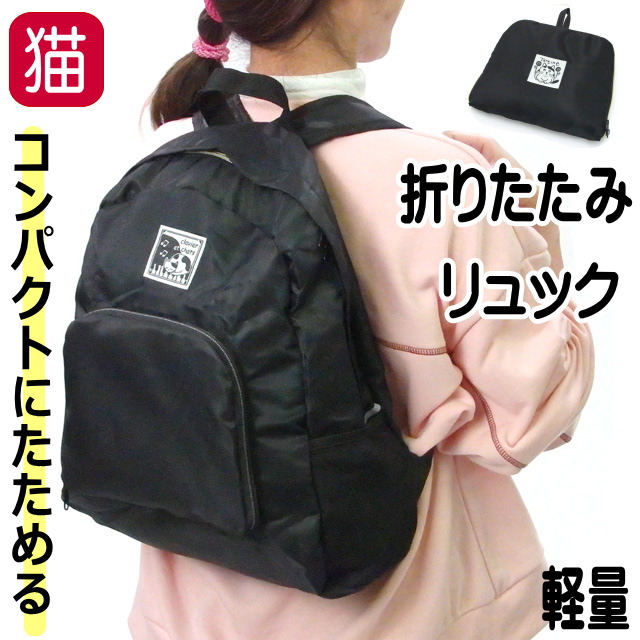 リュック 折りたたみ エコバッグ 猫柄 軽量 携帯 旅行 ポリエステル レディース ギフト プレゼント 誕生日 かわいい おしゃれ