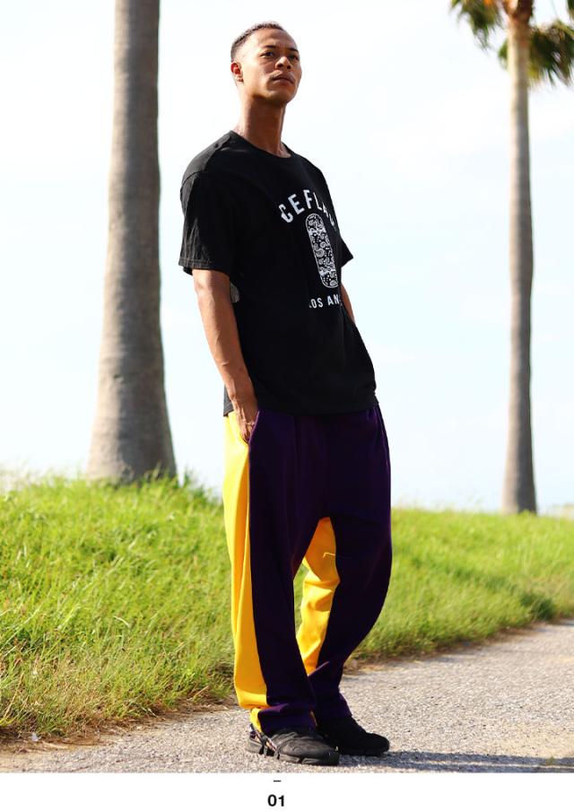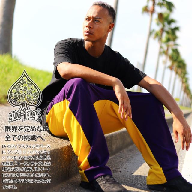 ACEFLAG ロングパンツ スウェットパンツ メンズ レディース 紫黄色 大きいサイズ エースフラッグ スウェット ジャージ おしゃれ 切り替え バイカラー 無地 b系 ヒップホップ ファッション ダンス ストリート系 ブランド AF-LP-SW-001-YP