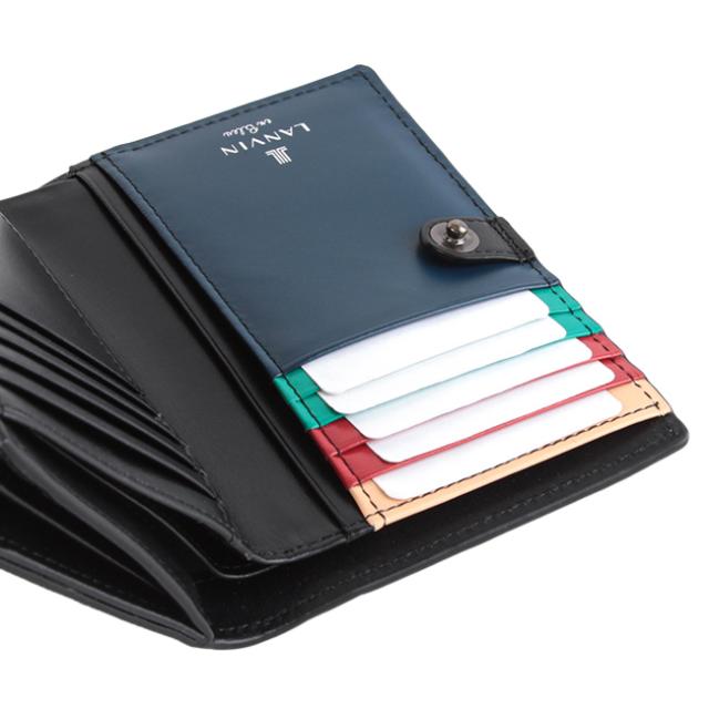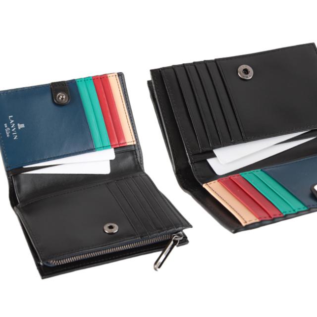 | 変則的で海面のような美しいしわが魅力的なシリーズ「スタンパ」 「二つ折り財布」 メインは水シボエンボスレザー(牛革)を使用したLANVIN en Bleuらしいシンプルなデザイン。中を開けるとシンプルな見た目とは裏腹に、LANVIN en Bleuのテーマカラーを落とし込みカラフルに仕上げました。インポートらしい個性的な表情に仕上がっています。ミドルで使いやすいサイズ感に仕上げています。 ・札入れ×2 ・カード段×10 ・ポケット×4 ・小銭入れ ・上記内にカード段×2 |