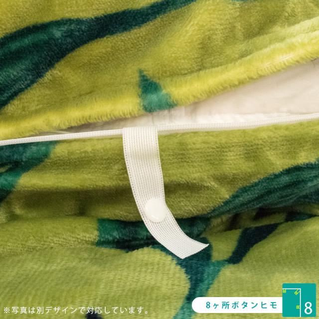 布団本体と触れ合う内側は起毛生地ではなくフラットな状態に。そうすることで、本体とカバーの摩擦を減らして毛玉ができるのを軽減しています。着脱が楽ちんなWスライダーの全開ファスナー、ある程度の寝返りにも対応できる8ヶ所ヒモ(ボタン付き)を採用しています。