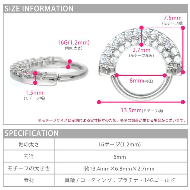 ボディピアス Soeur de Nana ひねって装着 アニーダブルジュエルラインリング 16G ボディーピアス 軟骨ピアス トラガス ヘリックス