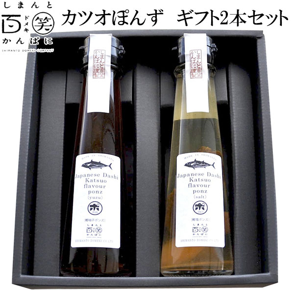 カツオゆずぽんず(瓶タイプ)・カツオしおぽんず(瓶タイプ)ギフト2本セット 110ml×2本 しまんと百笑かんぱに ギフト箱入り ゆずぽんず しおぽんず ポン酢 高知 四万十 調味料 深層水塩 四万十産柚子果汁 鰹節 ドメキ どめき