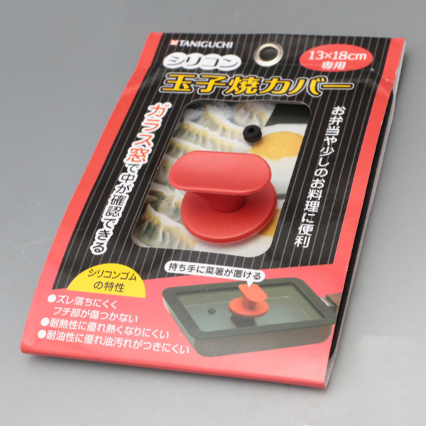 ガラス窓を確認しながら調理ができる便利な13×18cmの玉子焼器用の蓋です。耐熱性・耐油性に優れたシリコンゴムを使用しています。ガラス窓の周りがシリコン素材で本体に密着しやすい形で、玉子焼き器を傷つけにくいです。持ち手には菜箸が置ける仕様です。お弁当作りや少量のお料理に便利です。