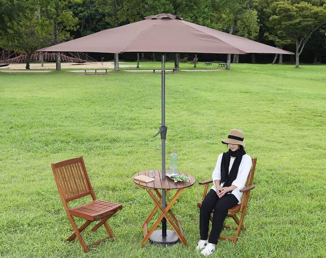 不二貿易 アルミパラソル チルト機能 クランク開閉 85186 ブラウン 奥行270×高さ242×幅270cm