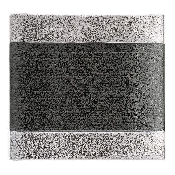 ●黒ベースにシックなシルバーの輝きがスタイリッシュな、美濃焼き磁器製角皿18cmです。