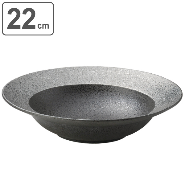 プレート 22cm リムクーププレート 隠れ窯 錫音 皿 食器 和食器 磁器 日本製 ( リムボウル クープ皿 中鉢 丸 リム ラウンド 中皿 リム鉢 深皿 スープボウル サラダボウル おしゃれ 和モダン 黒 シルバー )