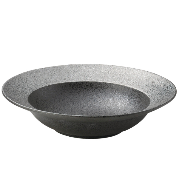 ●黒ベースにシックなシルバーの輝きがスタイリッシュな、美濃焼き磁器製深皿22cmです。