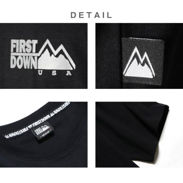 FIRST DOWN ファーストダウン メンズ レディース Tシャツ 半袖 ワンポイント ロゴ ホワイト ブラック ピンク ストリート カジュアル スケボー アメカジ ブランド シンプル きれいめ 大人 紳士 男性 大人 丈夫 頑丈 パジャマ 部屋着 タフ ペアルック リンクコーデ