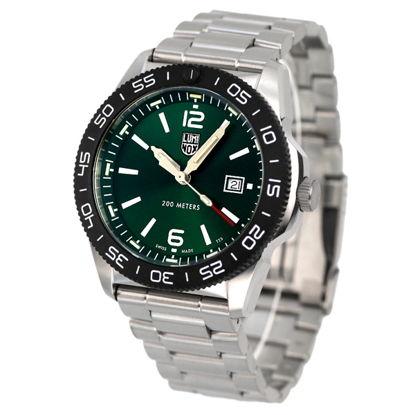 7年保証キャンペーン ルミノックス パシフィック ダイバー 3120 シリーズ 44mm スイス製 クオーツ メンズ 腕時計 l3137 LUMINOX PACIFIC DIVER 3120 SERIES 44mm アナログ グリーン ◆LUMINOX(ルミノックス)は1989年に創業。高性能なスポーツラインを展開しており、ラテン語で「明るい夜」を意味するブランド名を掲げているように、最先端の発光と視認性の良さを特徴としています。極限の状況下で行われるミッションで必要となる視認性を確保しているルミノックス時計は、特殊軍用時計として絶対的な信頼感を得ています。 200m防水性能に加えて、LLT(ルミノックス・ライトテクノロジー)により昼夜を問わず優れた視認性を発揮。ダイバーズウォッチならではの逆回転防止ベゼルには強度と軽量性に優れるCARBONOX製のベゼルを採用、裏蓋にはブランドテーマでもある「EVERY SECOND COUNTS」を刻印しています。広大な大自然を感じさせる透明感のあるグリーンを文字盤に採用。