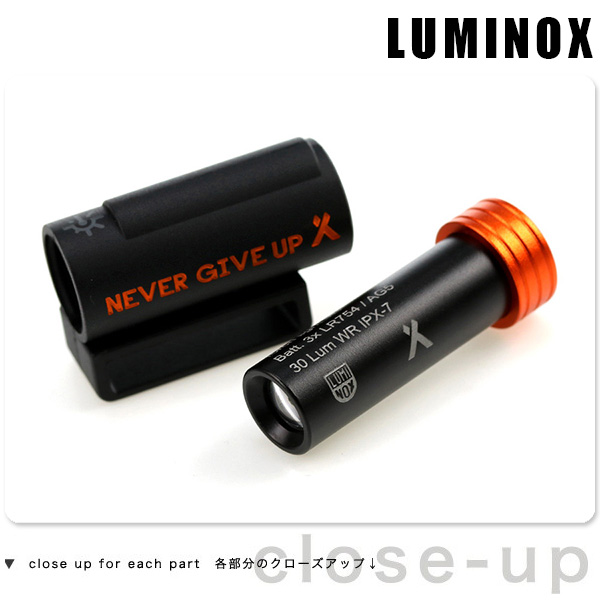 ルミノックス ミニフラッシュトーチ アルミニウム 懐中電灯 lJAC-LTORCH24 LUMINOX MINI FLASH TORCH ◆LUMINOX(ルミノックス)は1989年に創業。高性能なスポーツラインを展開しており、ラテン語で「明るい夜」を意味するブランド名を掲げているように、最先端の発光と視認性の良さを特徴としています。極限の状況下で行われるミッションで必要となる視認性を確保しているルミノックス時計は、特殊軍用時計として絶対的な信頼感を得ています。 ルミノックスのミニフラッシュトーチ。時計のベルトに通して使うので、邪魔にならずに屋外、キャンプ、または日常で使用していただけます。