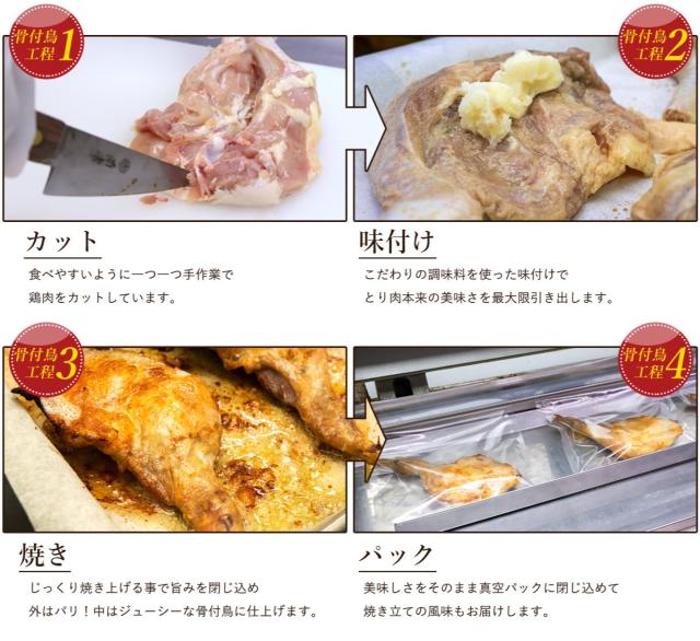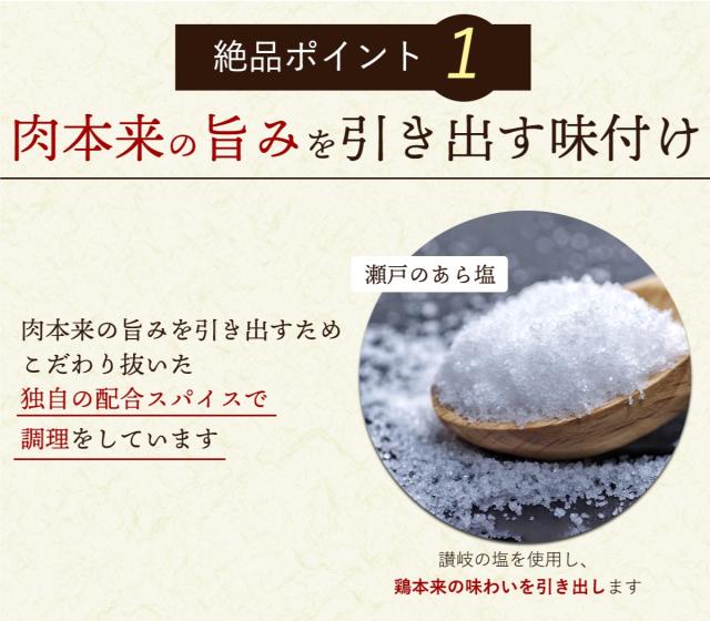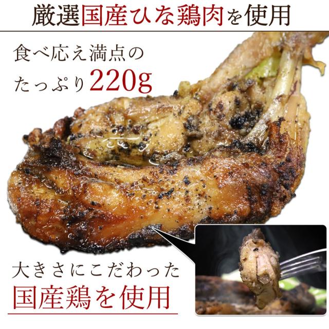 国産のひな鳥を使用し、無添加にこだわった本場の骨付き鳥です。 ピリッと辛い濃いめの味付けで、ご飯やお酒によく合います。お酒の肴にも、ちょっと贅沢なお食事やパーティー、BBQ(バーベキュー)などにもオススメです。