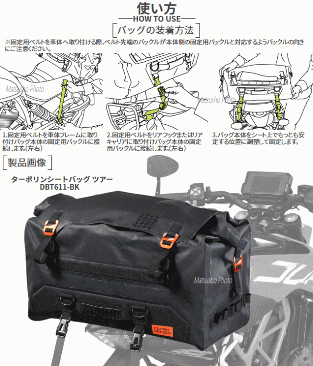 DOPPELGANGER バッグ バイク用 シートバッグ 防水バッグ 防水シートバッグ ツーリングバッグ ターポリンシートバッグ ツアー DBT611-BK ブラック