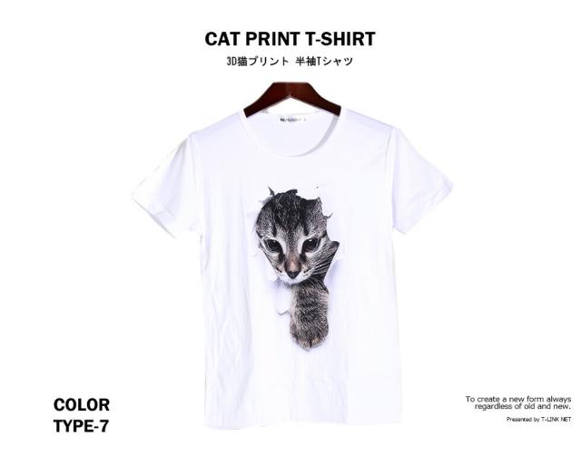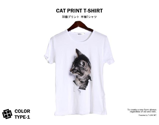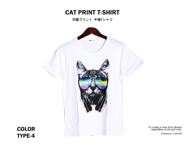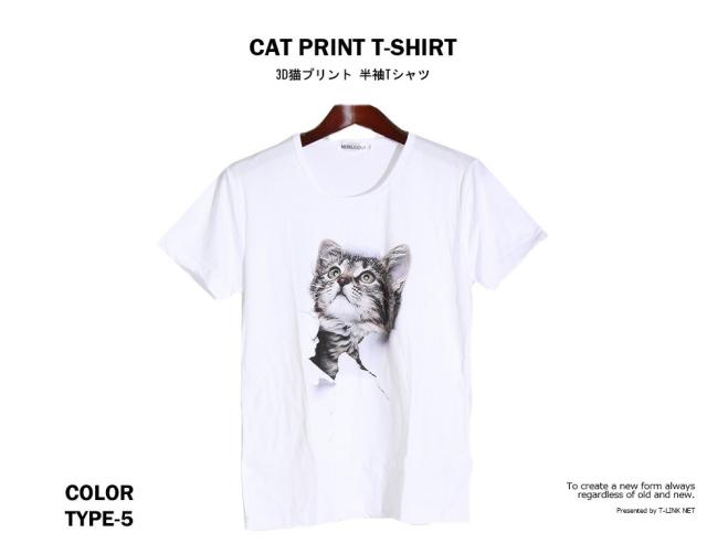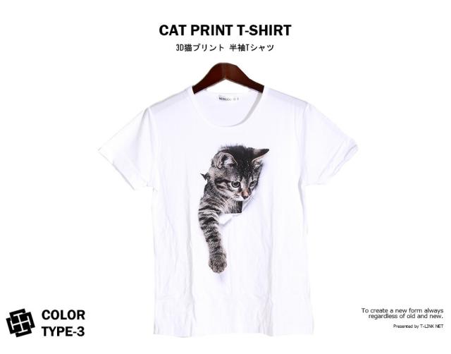 3D 猫Tシャツ メンズ レディース おもしろ パロディ 半袖 猫 ねこ キャット にゃんこ グラフィック Tシャツ ネコ メンズ レディース デザインTシャツ ネタ ストリート 個性的トップス カットソー かわいい アニマル 動物 メッシュ ポリエステル S-3XL 黒 白 春 夏 秋