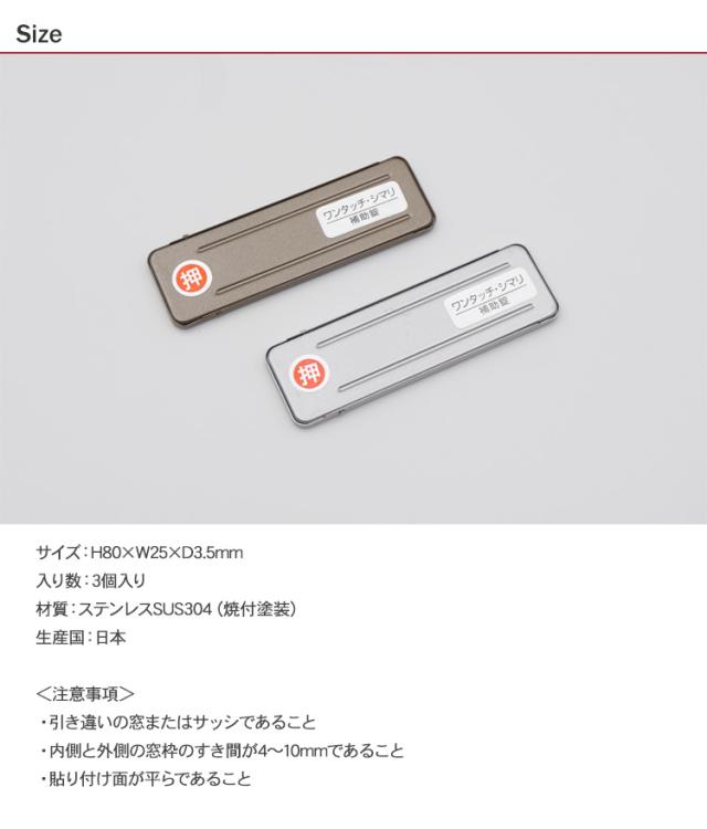 窓 防犯 ストッパー サッシ引き戸用補助錠 ワンタッチ シマリ 大(3個入り) 【メール便は4点まで】 防犯 安全 対策 窓 網戸 補助錠 簡単 設置 泥棒 空き巣 対策 防犯用品 和気産業