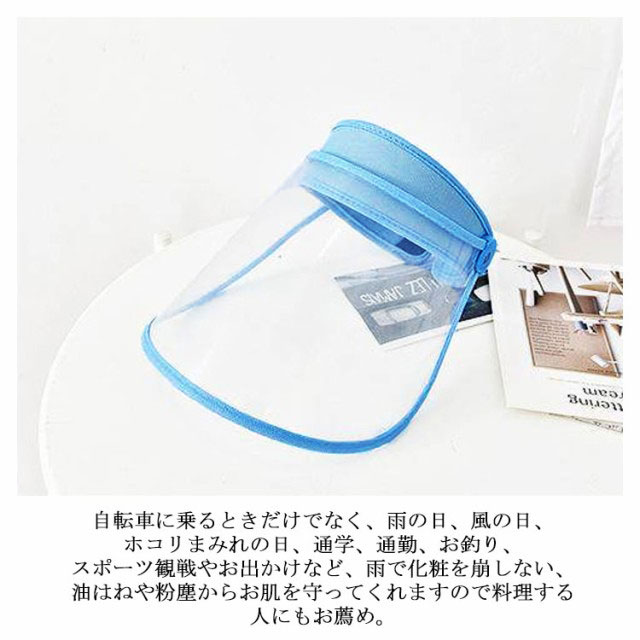 | 【レインバイザー】雨の日に通勤やおでかけなど、ワイドなつばで顔や耳をしっかりガードします。高い透明度より見通しが良い、花粉症対策、防塵、油はね防止等にも効果的です。顔を全方向に保護し、飛沫を遮断でき、感染を防げ、単一の口鼻保護するよりも安全である。 【通気性が良い】肌に接触する部分は柔らかくて通気性が良い素材を採用してます、おでこに優しく、汗が出てもすぐ吸収され、長時間使用しても蒸れにくいです。伸縮性抜群、長時間つけても痛くならない。 【360°つば角度調整可能】バイザー部分が360°回転でき、1段階毎にカッチリ止まります!太陽や雨、風の状況によってつばの角度を自由に変えられます、不要の時はつばを上げて固定すればオケです。耐高温素材なので100℃熱湯で洗浄することができます。 【頭囲適応サイズ】頭囲適応サイズ(54-60cm)。フリーサイズなので、頭の形や大きさに関わらずしっかり固定できます。付属の首紐は取り外し可能で、長さも調節できます、風が強い場合ご利用ください。 【様々なシーンで大活躍】自転車に乗るときだけでなく、雨の日、風の日、ホコリまみれの日、通学、通勤、お釣り、スポーツ観戦やお出かけなど、雨で化粧を崩しない、油はねや粉塵からお肌を守ってくれますので料理する人にもお薦め。ご注意:傷付き防止のため、保護フィルムがつば部の表と裏に貼ってあります、ご使用する前に必ず両面のフィルムを剥がしてください。 | |