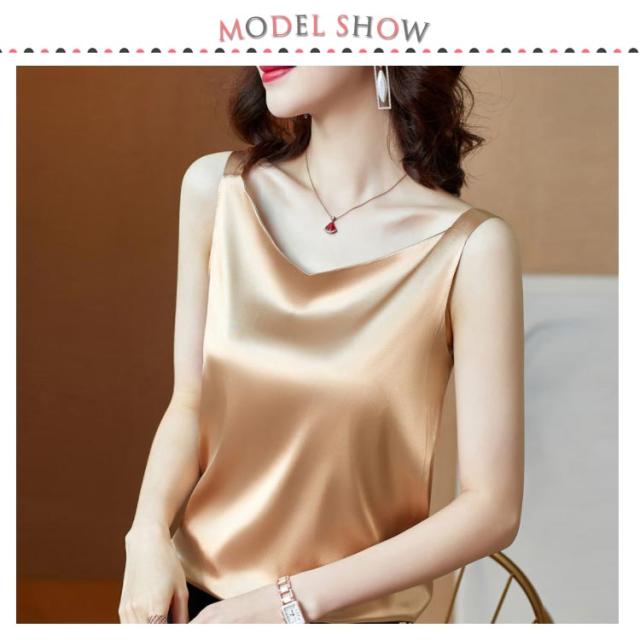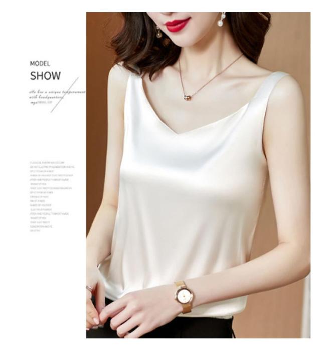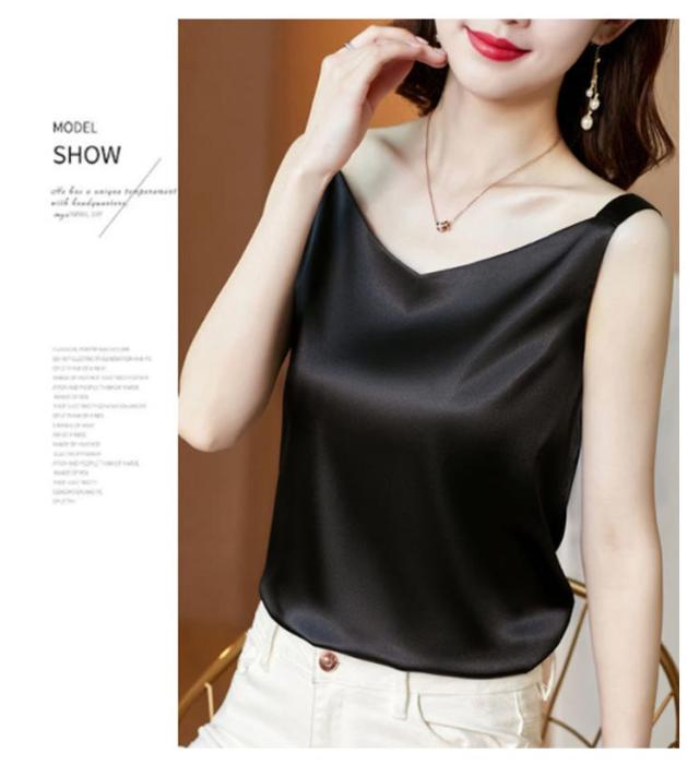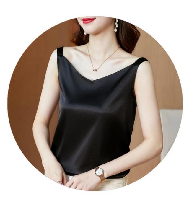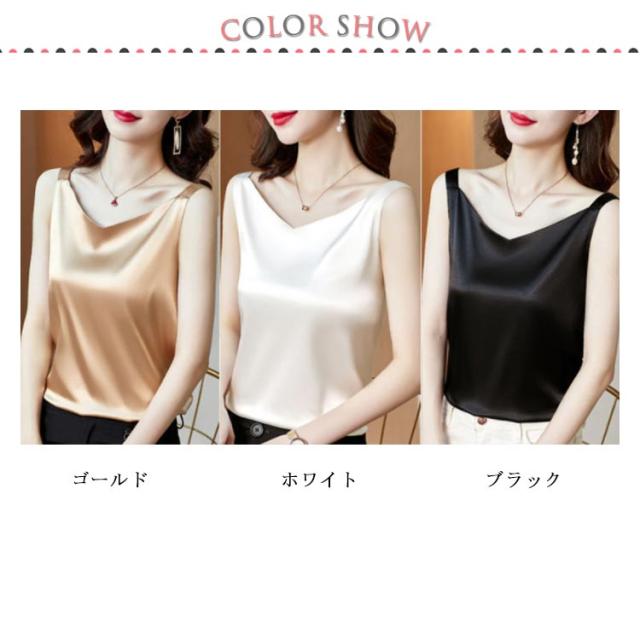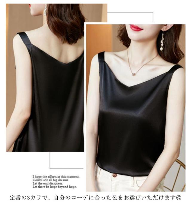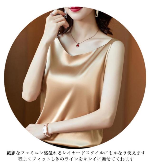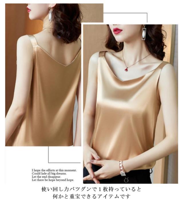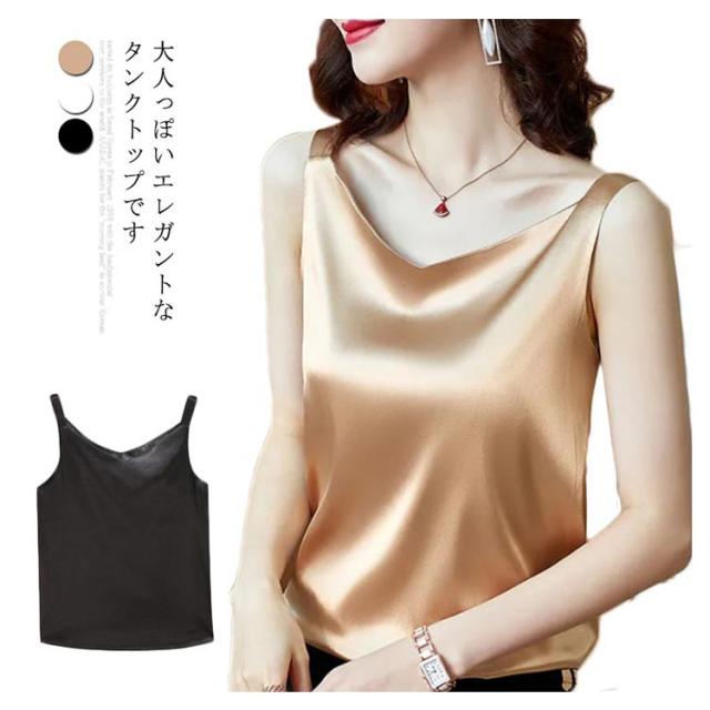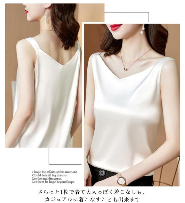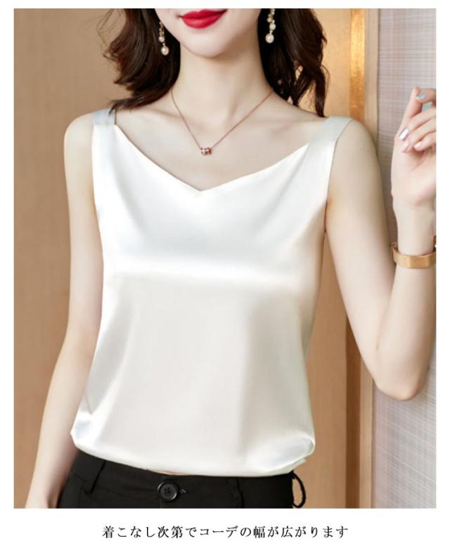 送料無料 タンクトップ レディース キャミソール サテン Vネック レディース トップス ノースリーブ シンプル 無地 OL 光沢感 セクシー
