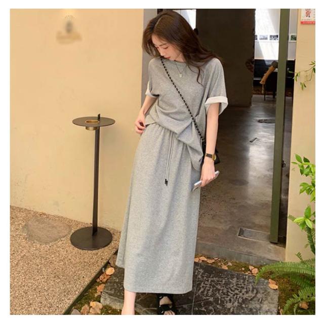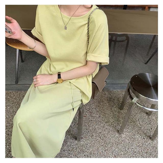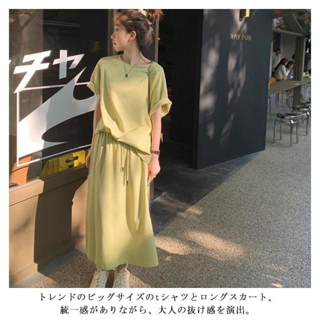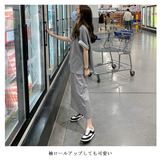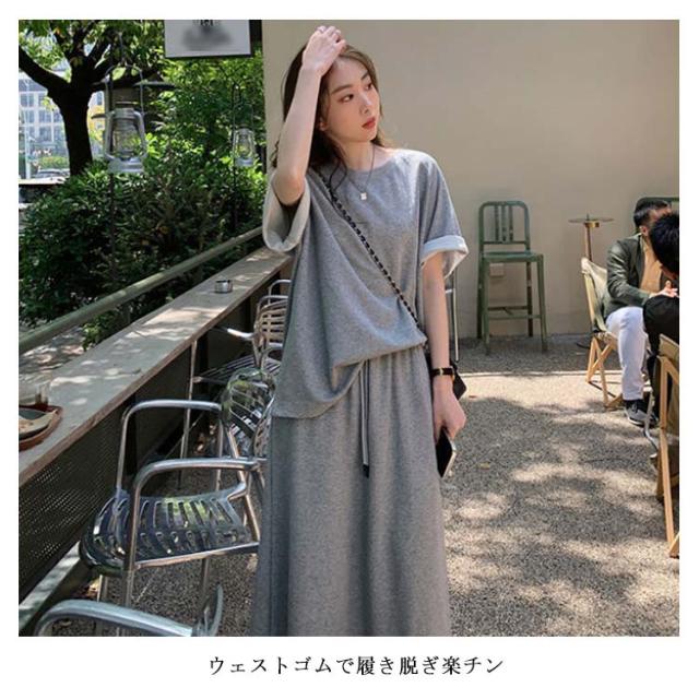 大人ラフな着こなし♪ 半袖tシャツ ロングスカート スウェット スカート セットアップ ワンピース オールインワン マキシ丈スカート レディース 送料無料 春夏 5分袖