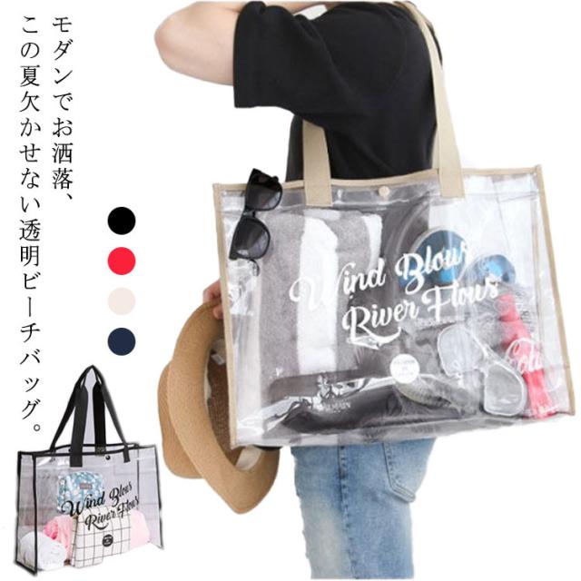 ビーチバッグ 透明 送料無料 プールバッグ ビニールバッグ 大容量 防水 クリア 肩掛けバッグ トートバッグ 送料無料 温泉 水着 夏 海 ビーチ レジャー