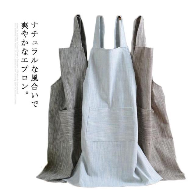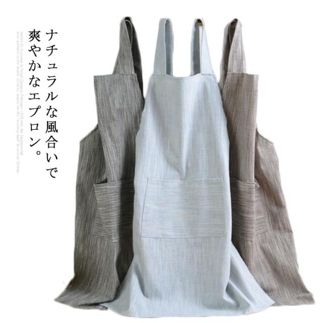 エプロン リネンエプロン ロング丈 カフェエプロン 綿麻エプロン 保育士 着脱簡単 リネンコットン 花屋 飲食店 自炊 キッチン エプロン 胸当て ゆったり ナチュラル シンプル