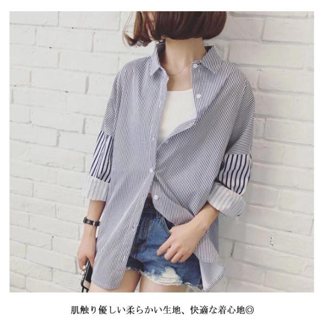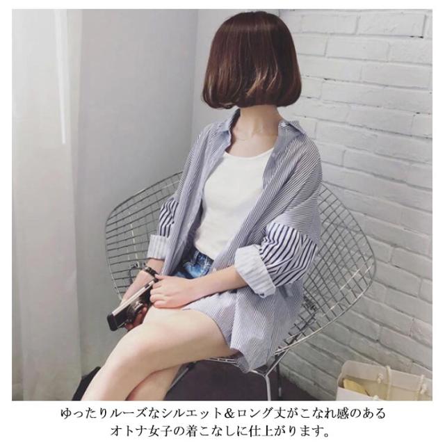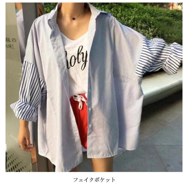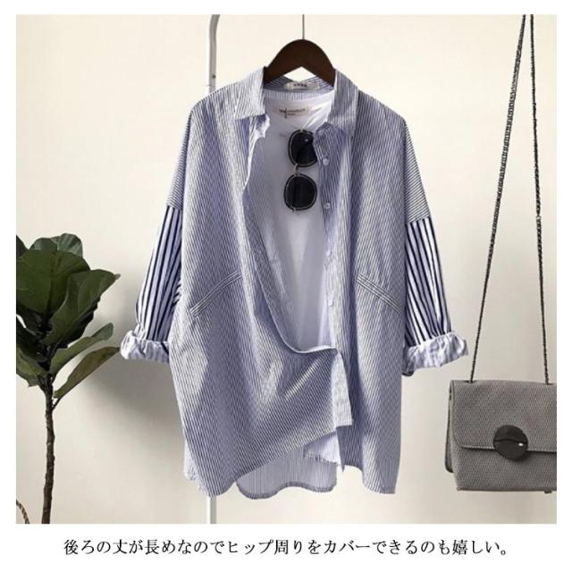 シャツ オーバーサイズ ビックシルエット 長袖 ブラウス トップス レディース 送料無料 横縞 縦縞 韓国ファスナー チュニック 羽織り 春夏 冷房対策 シャツブラウス 体型カバー 秋