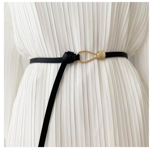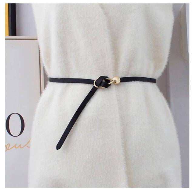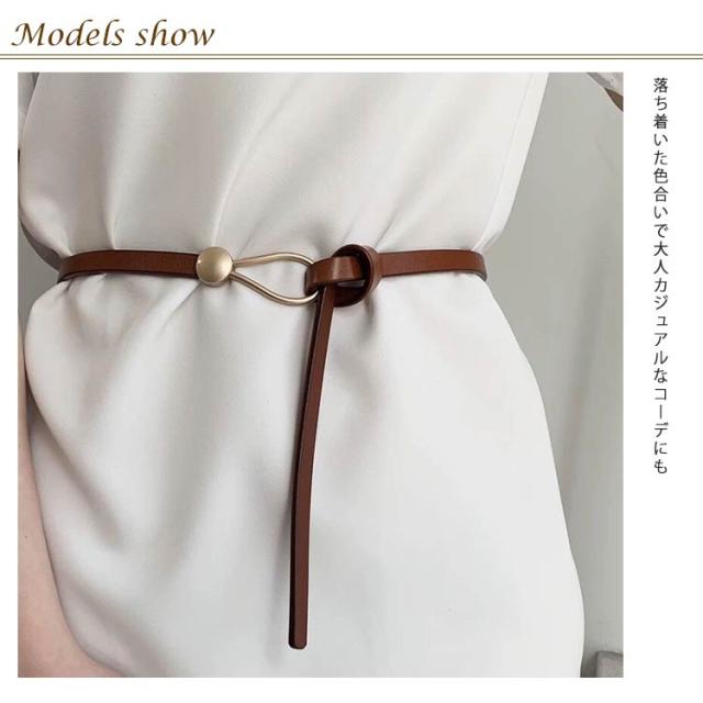 ベルト 細い 細め レディース ベルト穴なし 金具 長さ調整可 飾りベルト 送料無料 フェイクレザー ワンピース ゴールドバックル 金色バックル サークル アクセント 細見え 女性用 おしゃれ スカート コート