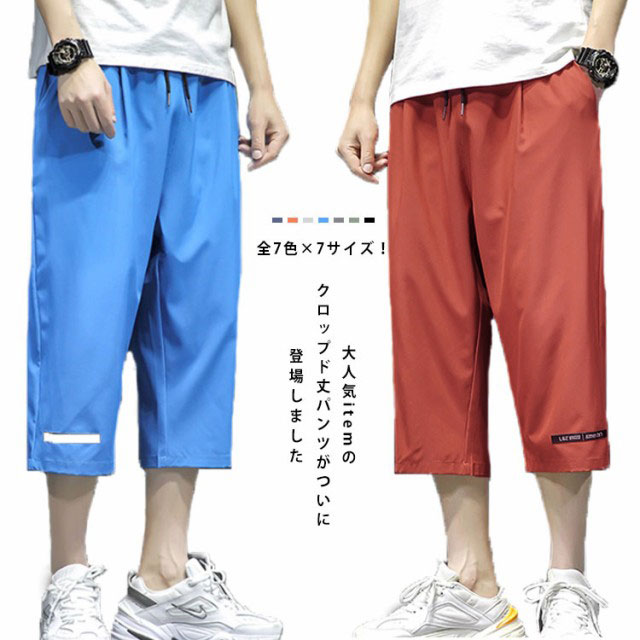 M−5XLサイズ!七分丈パンツ メンズ クロップドパンツ 薄手 7分丈パンツ ワイドパンツ ハーフパンツ 半ズボン 夏 春 秋 無地 ボトムス おしゃれ 新作 メンズファッション