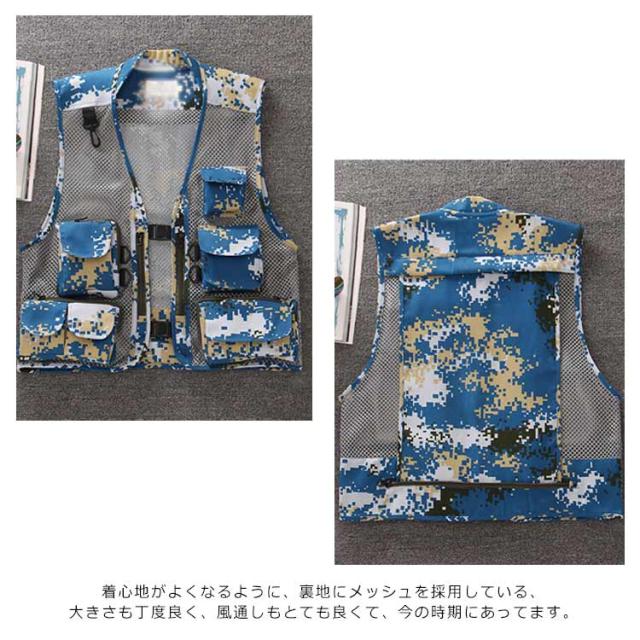| ウオーキング、登山、撮影、釣り、フィッシング、作業、キャンプ、遠足、旅行などの幅広いなどのシーンで利用することができます。 ベスト全体はメッシュデザインですので、通気性をもっとアップし、暑い夏でも全然蒸し暑くないです。 釣りの大好きな方、カメラマンの方など、大小異なるサイズのポケット沢山ついたが便利! 多くのポケットデザインが特徴で、このベストがあればバッグは不要といっても過言では程の収納力が魅力です。 着心地がよくなるように、裏地にメッシュを採用している、大きさも丁度良く、風通しもとても良くて、今の時期にあってます。 背中部分を収納すると夏用の網ベストに変身!夏の暑い日でも快適に。 薄手軽量、メッシュ部は通気性に優れ、アウターにもインナーにも着れてオールシーズン使用可能なフォトベストです。 | |