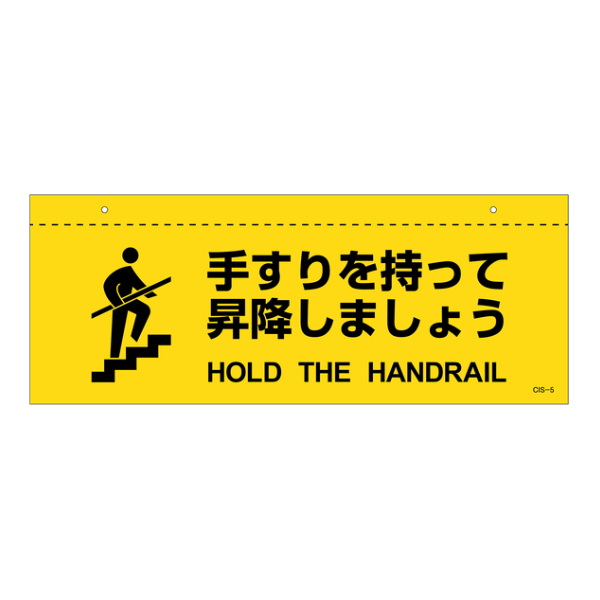 イラスト標識 天井用 「 手すりを持って昇降しましょう 」 ( 標識 イラスト 天井 看板 吊下げ 天井付 注意喚起 案内板 注意 喚起 表示 吊り下げ 日本語 英語 日本製 )