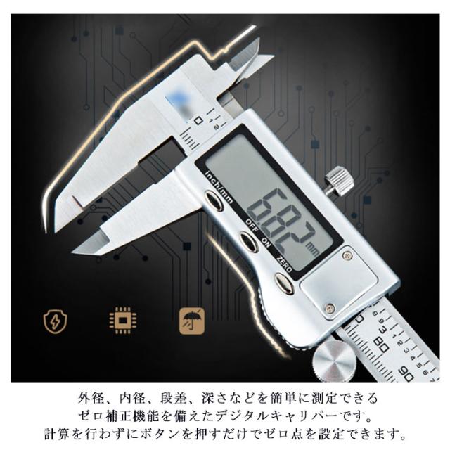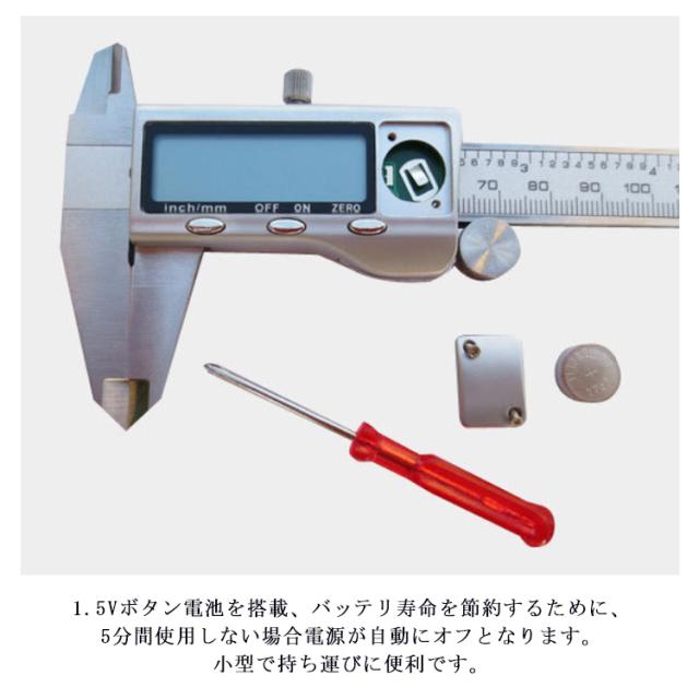 | 【高精度】このデジタルノギスは、測定精度±0.03mm、測定範囲:0〜300mm三種類サイズあり、最小読取値0.1mmで、より正確な測定値を得ることが可能です、精度が正確に求めるお客様にお勧めです。高度研磨に磨かれた表面、耐久性ステンレス鋼素材を採用しており、強度耐衝撃性に優れています。 【省エネ】1.5Vボタン電池を搭載、バッテリ寿命を節約するために、5分間使用しない場合電源が自動にオフとなります。小型で持ち運びに便利です。 【様々な測定ニーズに対応】外径、内径、段差、深さなどを簡単に測定できるゼロ補正機能を備えたデジタルキャリパーです。計算を行わずにボタンを押すだけでゼロ点を設定できます。 【LCD液晶画面】大型LCD液晶表示画面付き、一目でわかるデジタル表示で、読み間違いも避けることができます。 【適用場所】常用測量工具として、家庭、学校、研究所、工場、その他の場合に広く応用されています、精密作業に最適です。 | |