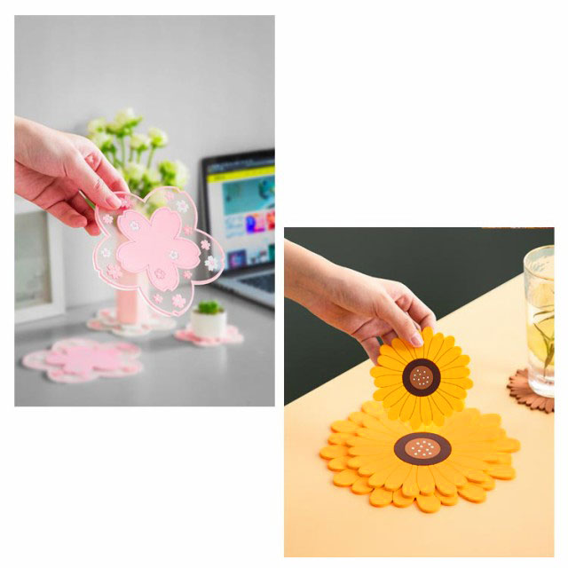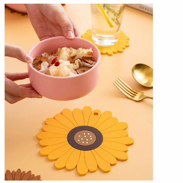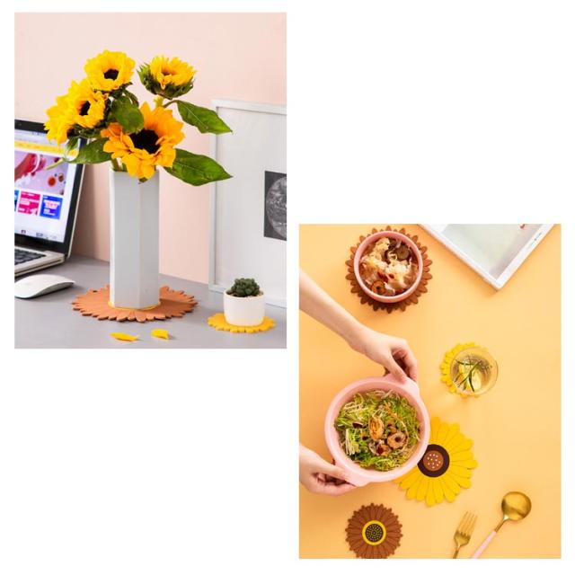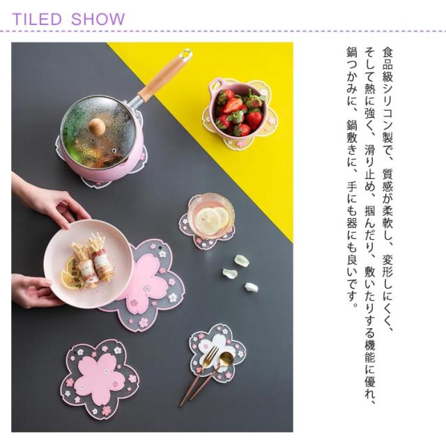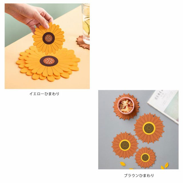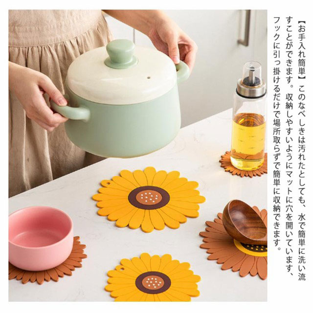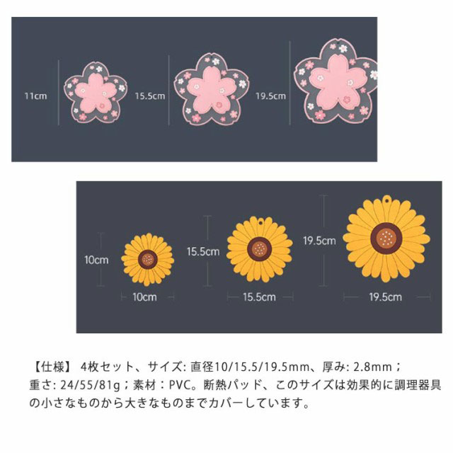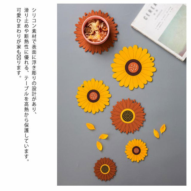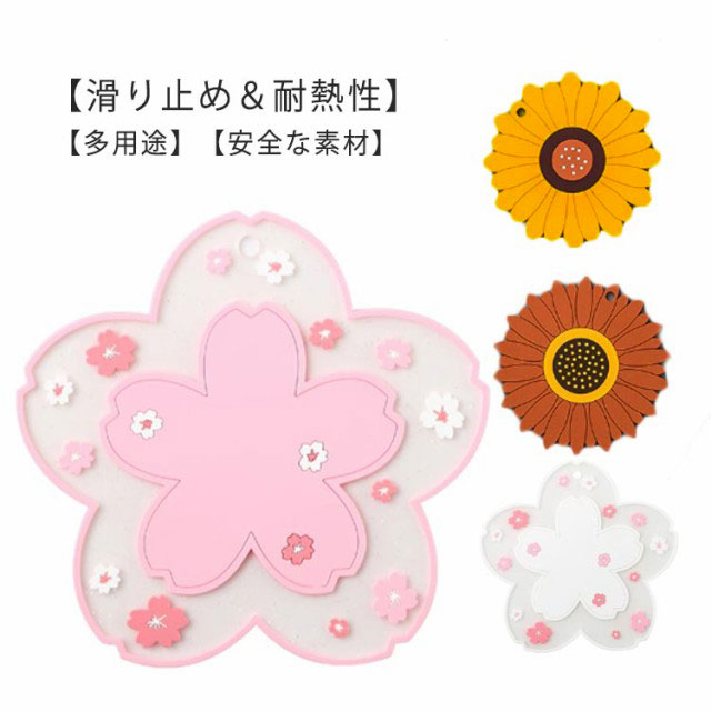 鍋敷き 耐熱 シリコン製 コースター 断熱パッド 鍋しき 鍋つかみ 滑り止め 防水 厚手 耐熱シリコン オーブンマット お鍋シート 台所シート 絶縁 柔軟 カップシート 耐熱皿マット 厚さ2.8mm ひまわり/桜