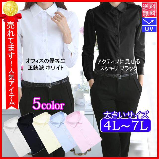 レディースシャツ ブラウス yシャツ メール便送料無料 制服 ビジネス オフィス Yシャツフォーマル スーツ リクルート 就活 OL 事務服 無地 長袖 半袖 定番 開襟 スキッパー ホワイト オフホワイト ブラック サックス ピンク 白 黒 大きいサイズ 4L 5L 6L 7L