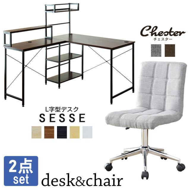 パソコンデスク デスク PCデスク L字型 コーナー ラック付き 木製 勉強机 書斎机 北欧 チェア イス 椅子 ダイニング デザイナーズチェア セス チェスターFAB