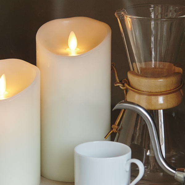 キャンドル 直径9×14.4cm ルミナラピラー LED ( ledキャンドルライト 間接照明 キャンドルライト インテリアライト ゆらぎ リアル 癒し リラックス 電池式 安全 おしゃれ リビング 寝室 無香 タイマー ベッドサイド )