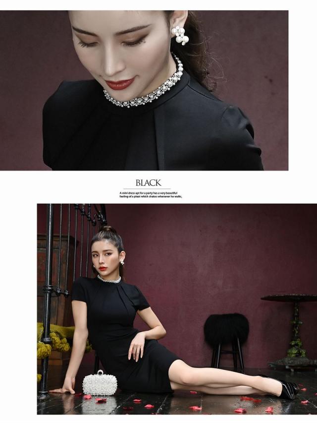 キャバドレス キャバ ドレス キャバクラ ミニドレス パーティードレス DaysPiece ハイネック 半袖 パール タイト