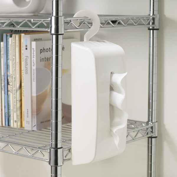 フック付きのティッシュボックスなので、洗面所やキッチンに吊り下げて使用可能です。引っ掛けられるところがあれば置き場所に困りません。