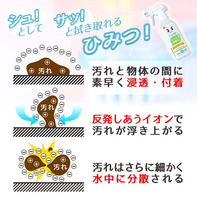 ●水拭きでは取れない汚れをアルカリイオンが包み込んで浮かせて落します。